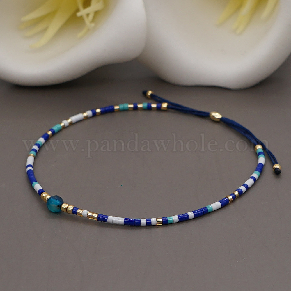 Женский браслет из бисера Miyuki с счастливым синим драгоценным камнем