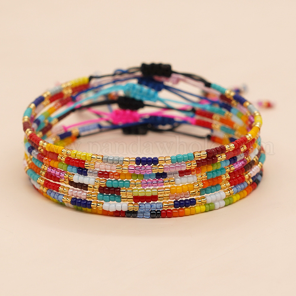 Богемный красочный браслет из тонких рисовых бусин для пар с уникальными смешанными бусинами