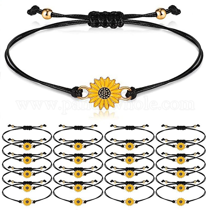 Браслет дружбы с ромашками и подсолнухом для пар - ювелирные изделия из воскового шнура из сплава