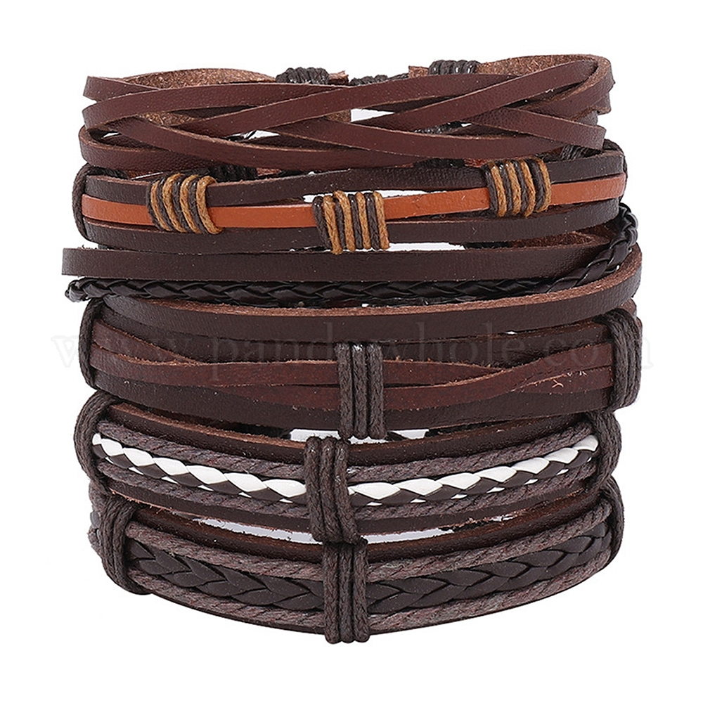 6 шт. 6 стильный регулируемый плетеный браслет из искусственной кожи, набор браслетов, Мужские штабелируемые браслеты из вощеного и пенькового шнура