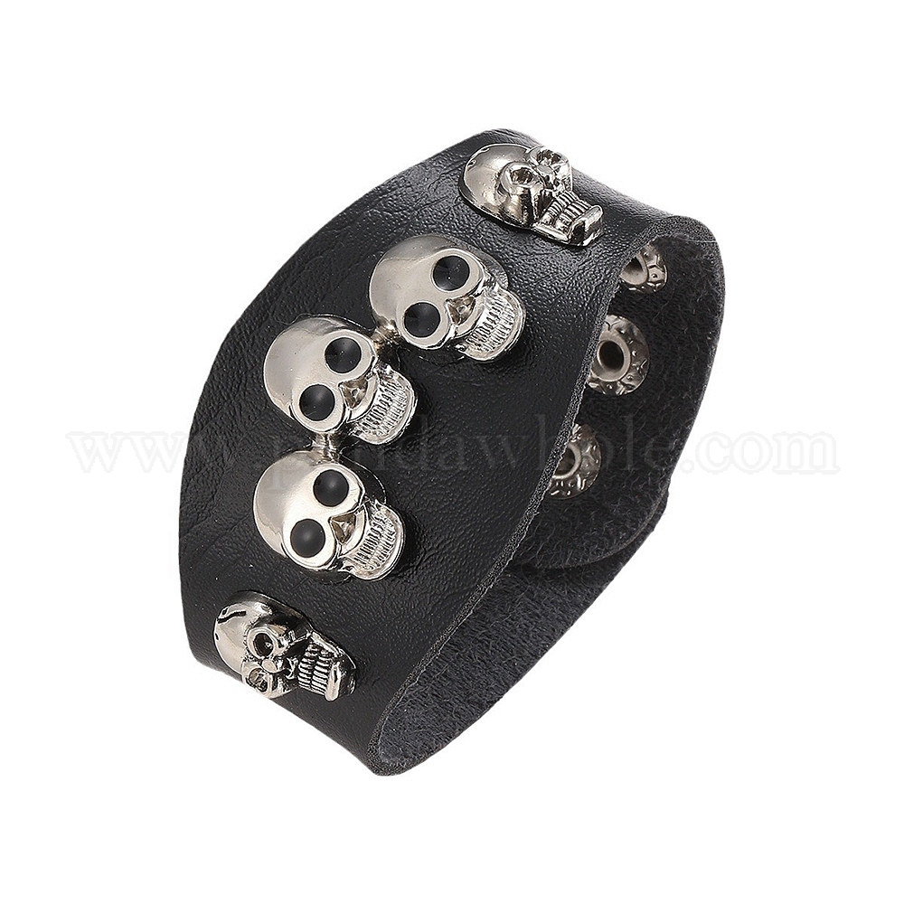 Пу кожаный шнур браслет, браслеты из нержавеющей стали с черепом
