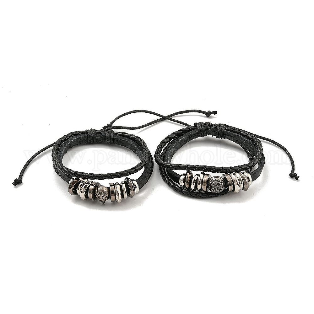 Трехслойные многонитевые браслеты из плетеной искусственной кожи и вощеных шнуров, браслеты из бисера