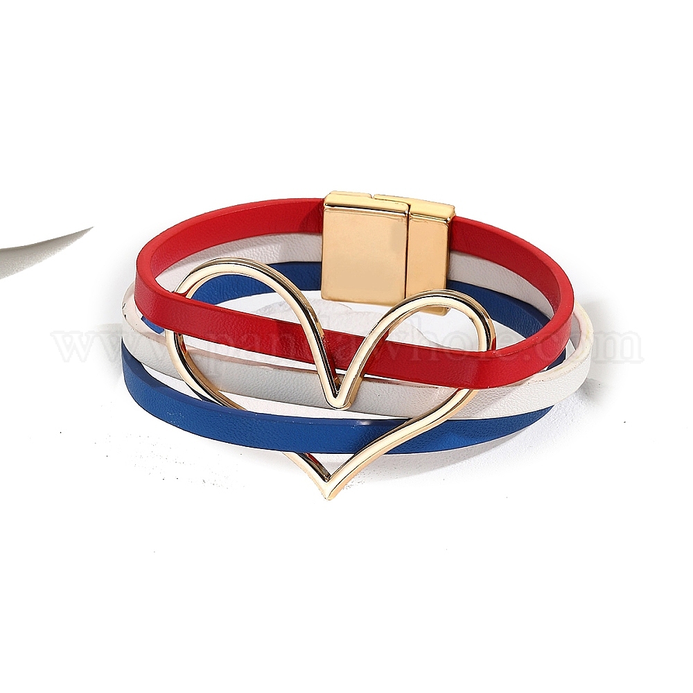 Браслеты из шнура из искусственной кожи в стиле флага США, красные, синие, белые, с застежкой и сердечком для подарка на День независимости (02TZAF)