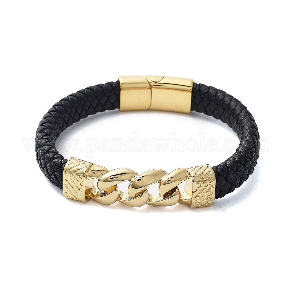 Мужские плетеные черные браслеты из искусственной кожи, витая цепочка 304 браслеты из звеньев из нержавеющей стали с магнитными застежками