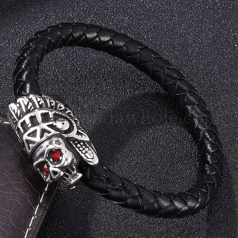 Браслет из натуральной кожи с широким шнуром, из нержавеющей стали магнитные застежки, череп