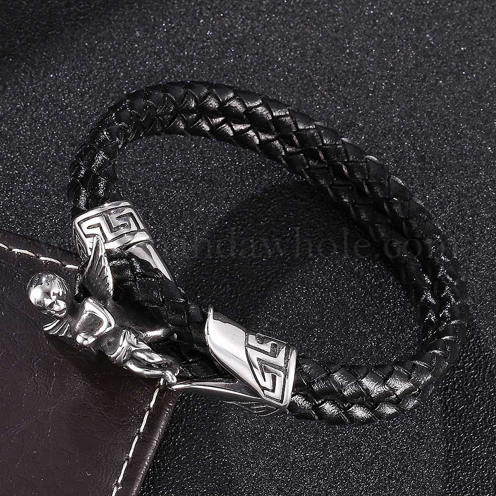 Браслет из натуральной кожи с широким шнуром и застежками-тогглами из нержавеющей стали, Рето манжета наручная защита для мужчин и женщин (02XA5Z)
