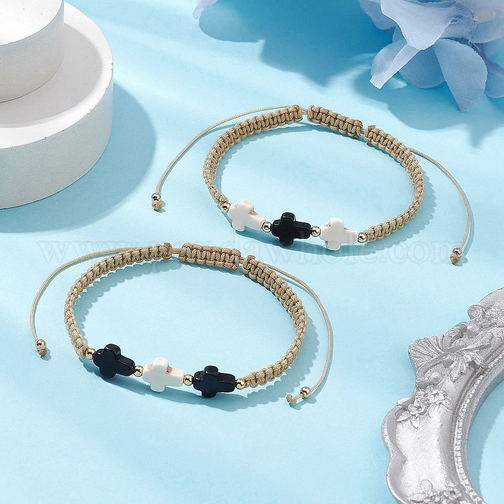 • Цвет Древесины 2шт. плетеные браслеты из вощеного нейлонового шнура для женщин и мужчин, с латунными бусинами и крестом из синтетической бирюзы, деревесиные, внутренний диаметр: 1-3/4~3-1/2 дюйм (4.5~9 см)