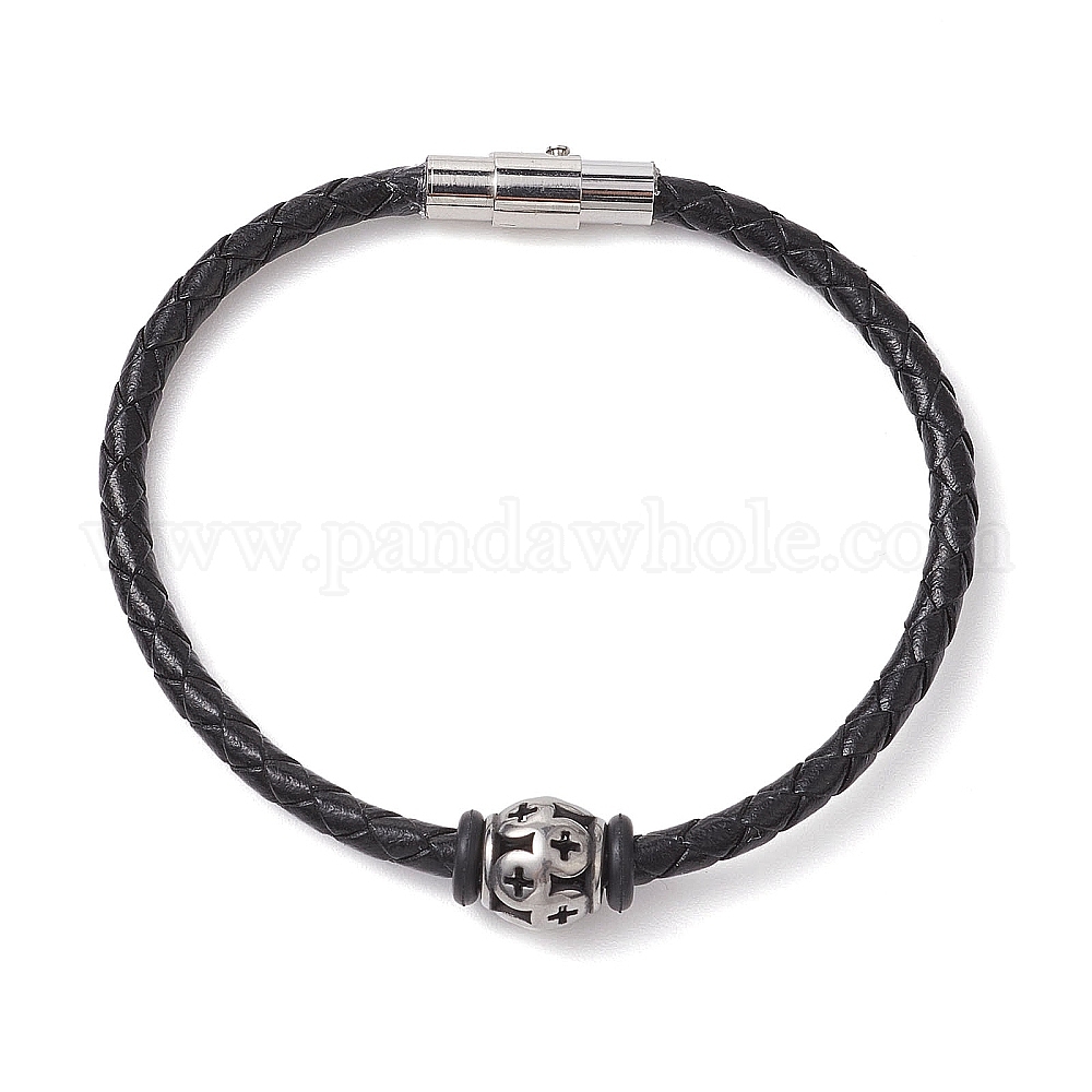 Плетеные браслеты шнур кожаный, с европейскими бусинами из нержавеющей стали и магнитными застежками