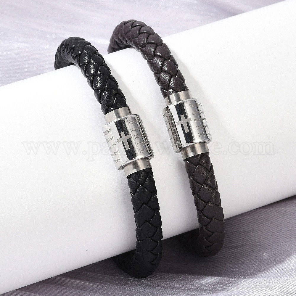 Плетеные браслеты из микрофибры, 304 колонна из нержавеющей стали с крестообразными браслетами для женщин и мужчин, с штык застежками