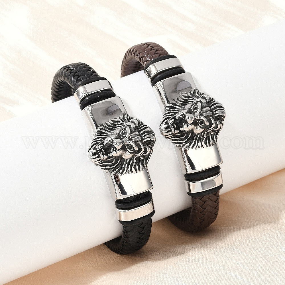 Плетеные браслеты из микрофибры, 304 браслеты из нержавеющей стали в виде льва для женщин и мужчин, с магнитной застежкой