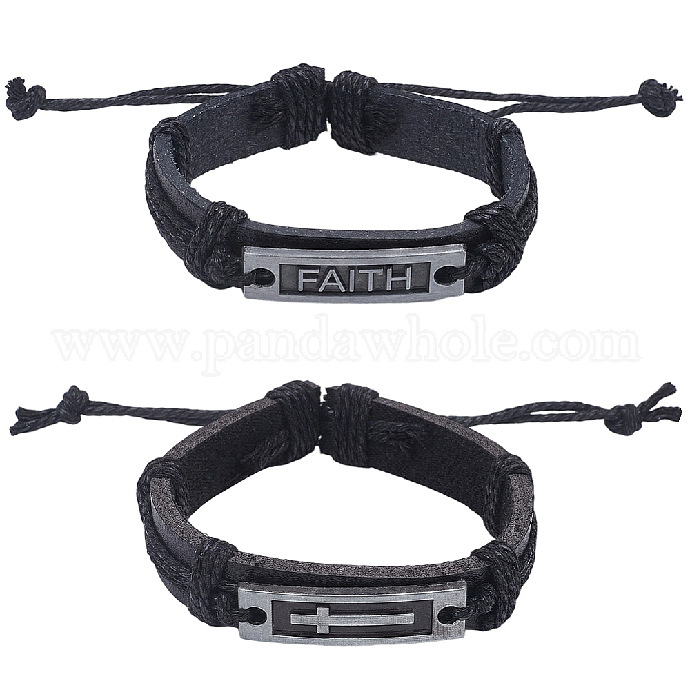 2шт. 2 стили браслет из сплава с крестом и словом веры, регулируемый браслет из искусственной кожи на шнурке для женщин