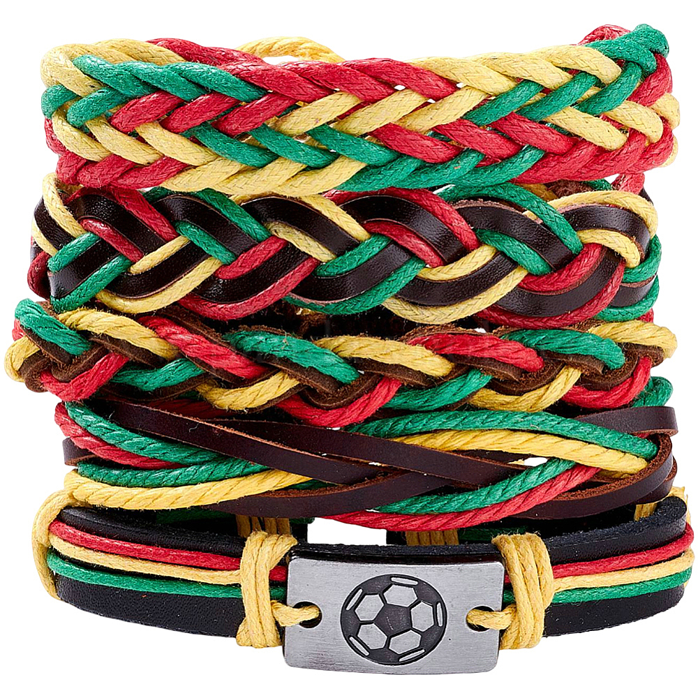 Набор плетеных кожаных браслетов для мужчин и женщин, браслеты из прямоугольных звеньев в форме футбольного мяча, регулируемые спортивные браслеты