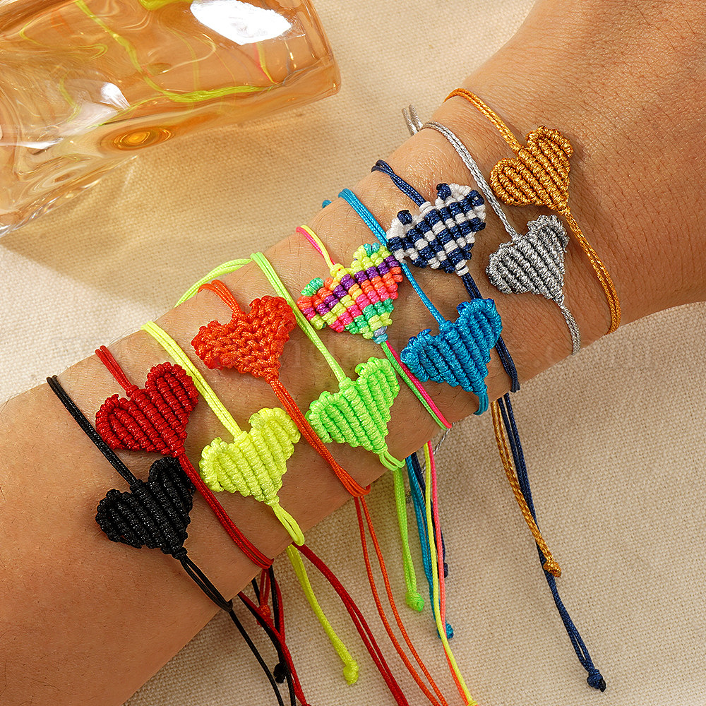 Регулируемые плетеные полиэстеровые шнуры-браслеты для дружбы и пар, сердце