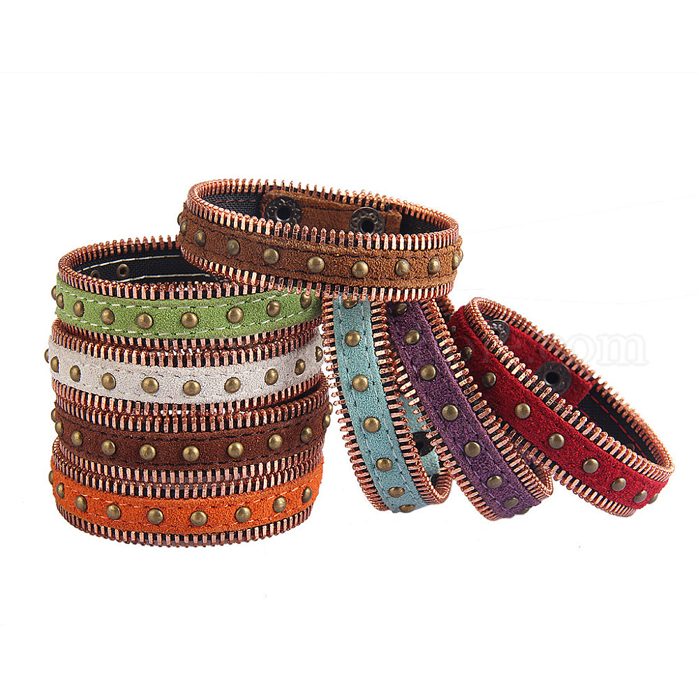 Браслеты из сплава, искусственной кожи, шнура, украшенного заклепками, Регулируемый ретро-браслет с заклепками для женщин и мужчин., античная бронза