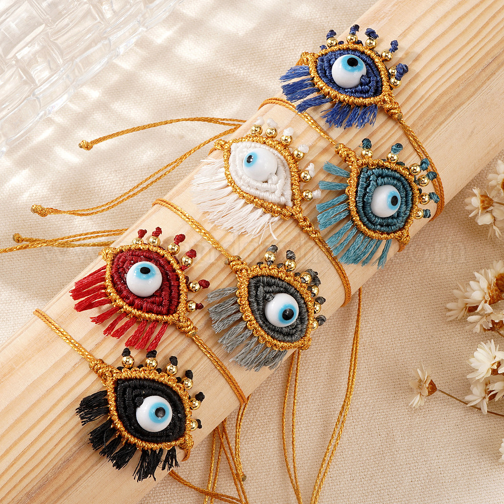 Богемные браслеты ручной работы с подвесками в виде «злого глаза» и кисточками., регулируемые браслеты с нейлоновой нитью для женщин