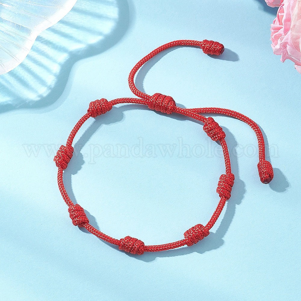 • Красный Регулируемые плетеные браслеты из полиэстера для женщин, узел, красные, внутренний диаметр: 1.97~3.66 дюйм (5~9.3 см)