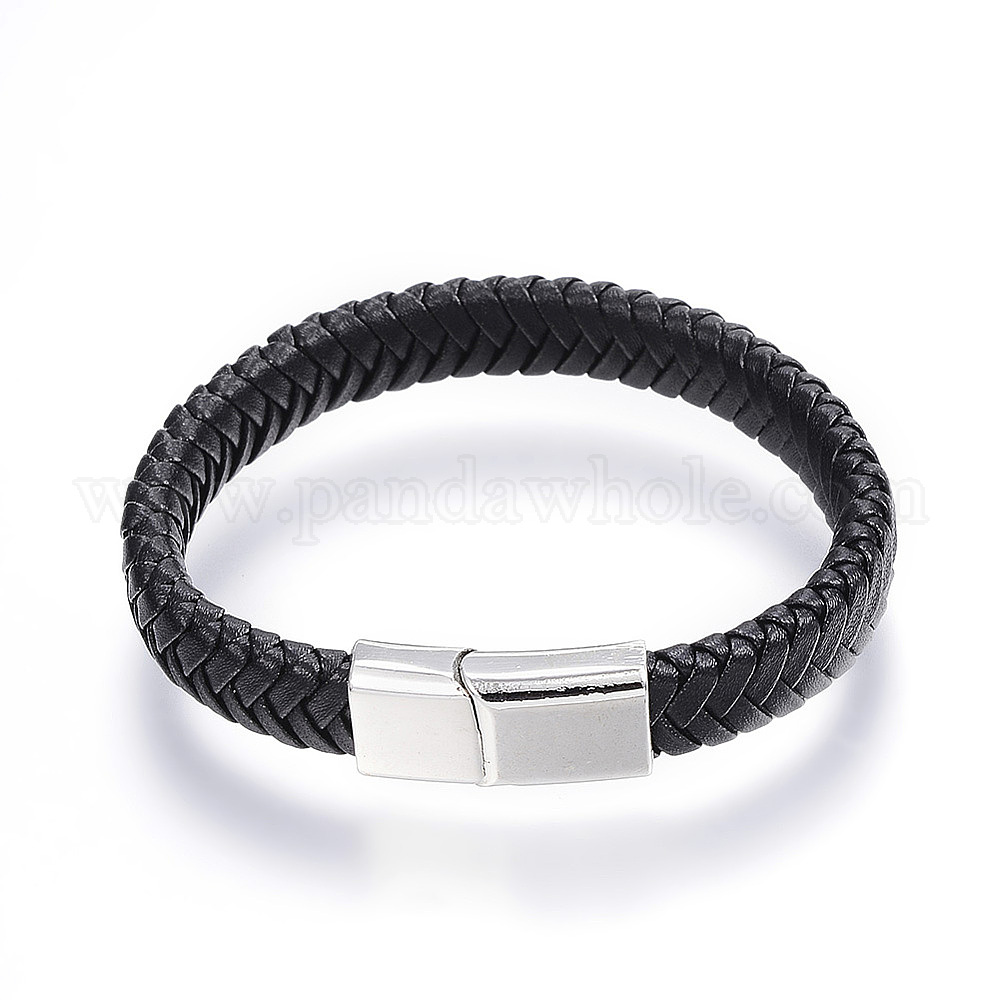 Плетеные браслеты шнур кожаный, Сплав с магнитными застежками, платина