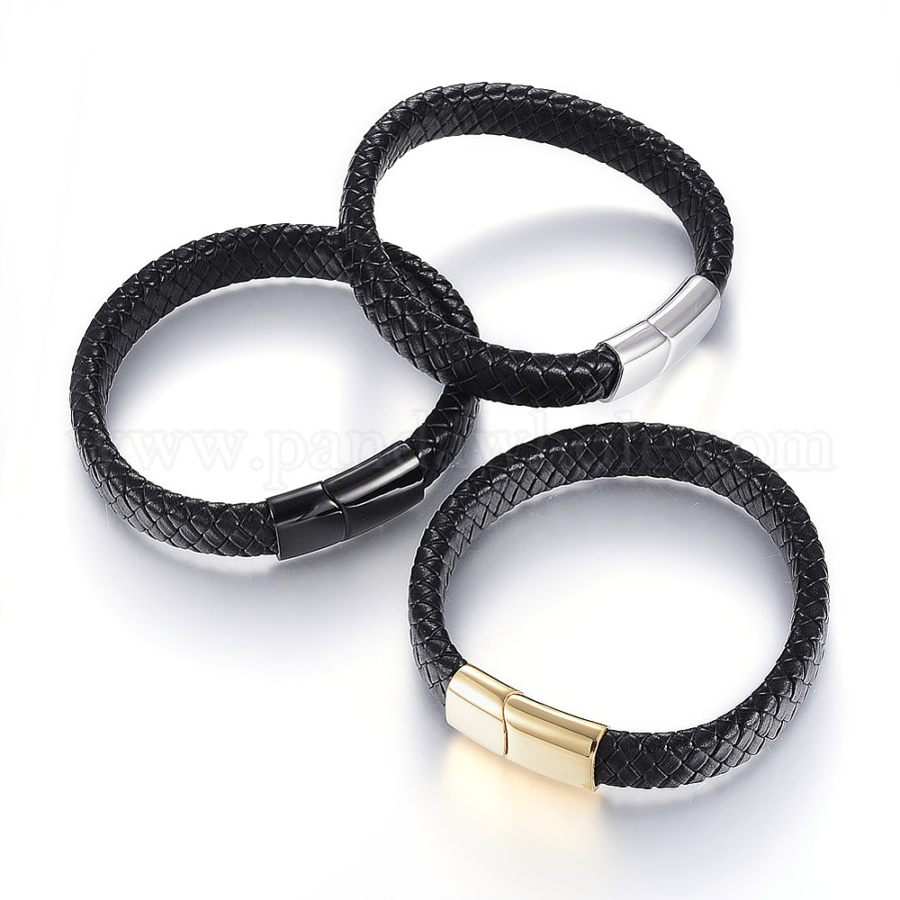 Плетеные браслеты шнур кожаный, с 304 из нержавеющей стали магнитные застежки