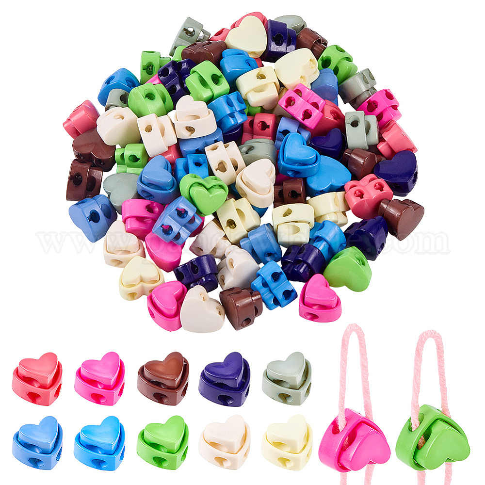 100 шт. 10 цвета пластиковые замки для шнура, застежка-кнопка с двойным отверстием на шнурке, сердце