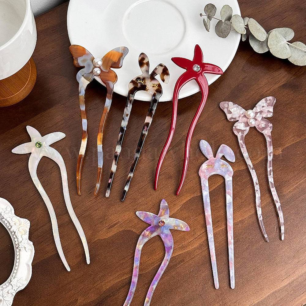 Вилки для волос из ацетата целлюлозы, с пластиковой имитацией жемчуга, аксессуары для волос для женщин и девочек, бабочка/морская звезда/кролик