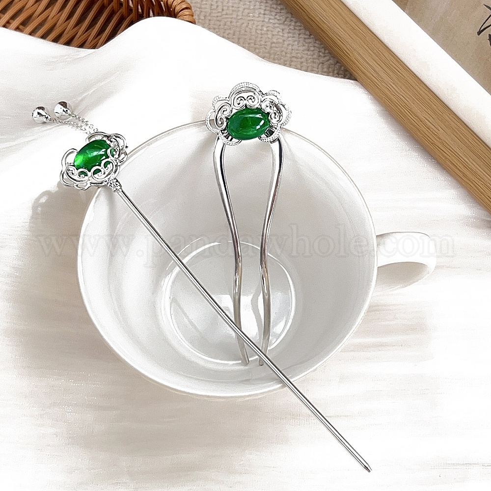 • Зеленый лайм Вилок волос сплава, аксессуары для волос викингов для женщин, зеленый лайм, 116x33 мм