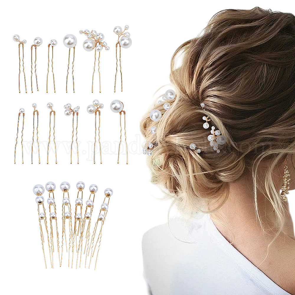 2 наборы 2 стили железные заколки для волос для женщин, с круглой абс пластмассовой имитационной жемчужиной