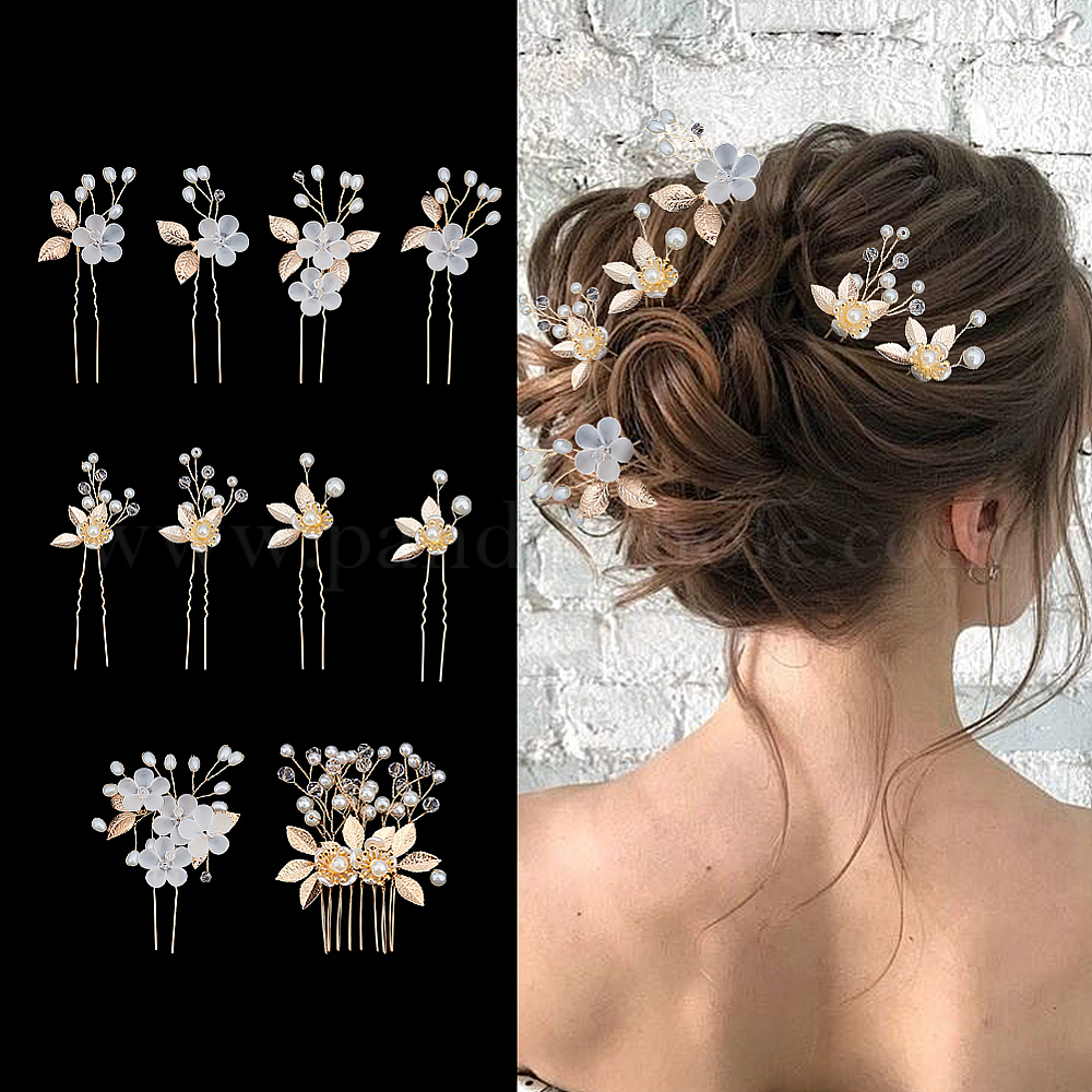 5 шт. 5 стили цветочные гребни для волос из латуни, с имитацией жемчуга из АБС-пластика: 83~102x32~65x10~12мм, 1 шт / стиль, 5 шт / комплект, 1 установить;