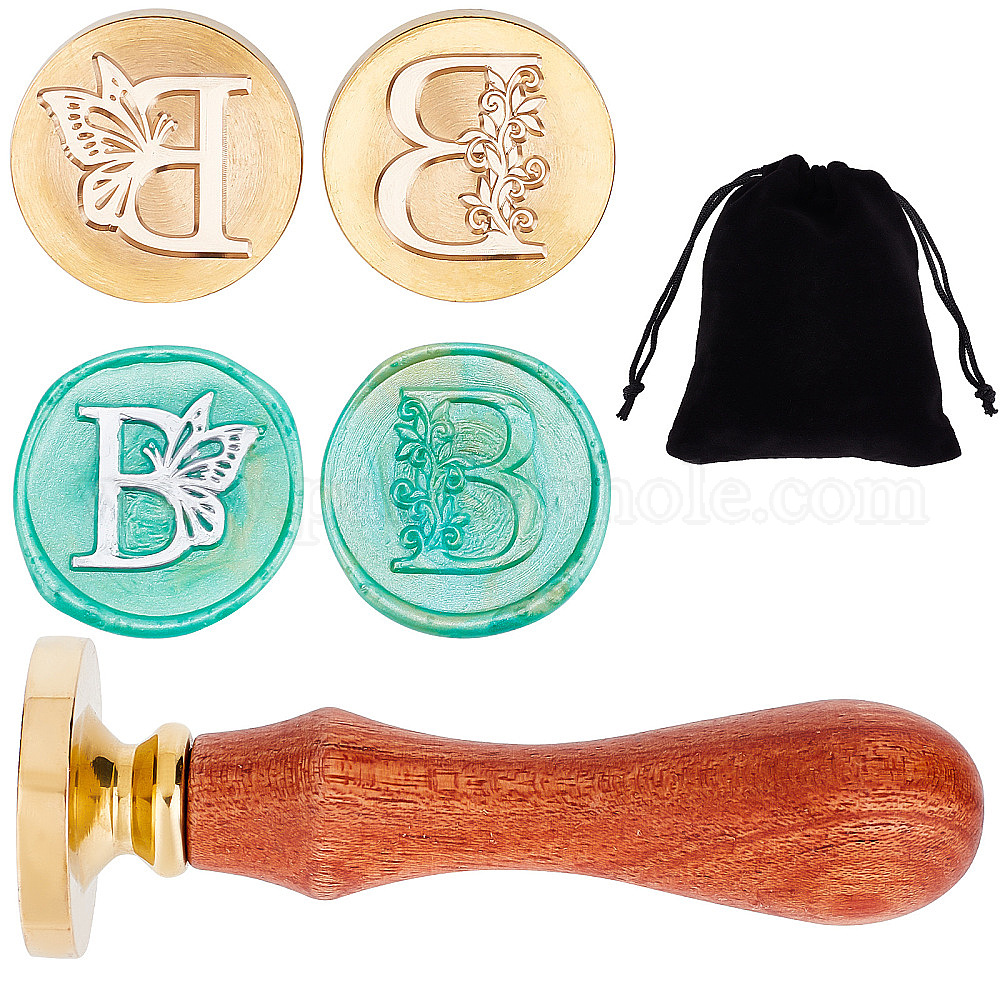 • Letter B Наборы для самостоятельного изготовления альбомов, включая латунную сургучную печать штамповочную головку, ручка из грушевого дерева и прямоугольные бархатные мешочки, letter.b, Головка штампа: 3см, 4 шт / комплект
