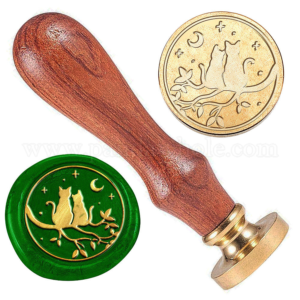Набор сургучной печати, Золотистый тон латунной сургучной головки, с деревянной ручкой, для конвертов приглашений