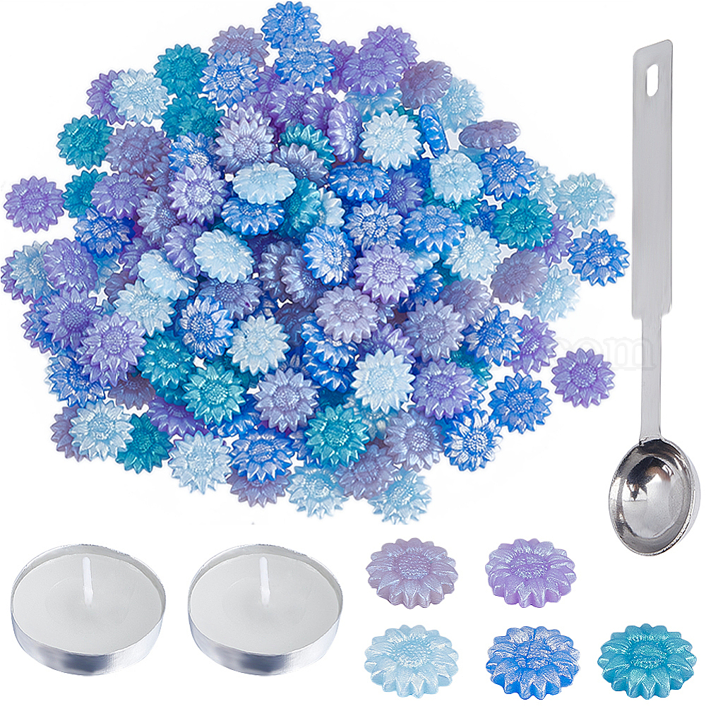 200шт. цветочные частицы сургуча, с ложкой из нержавеющей стали ПК, плоскими круглыми свечами ПК и пинцетом из железного бисера ПК., для ретро печать печать