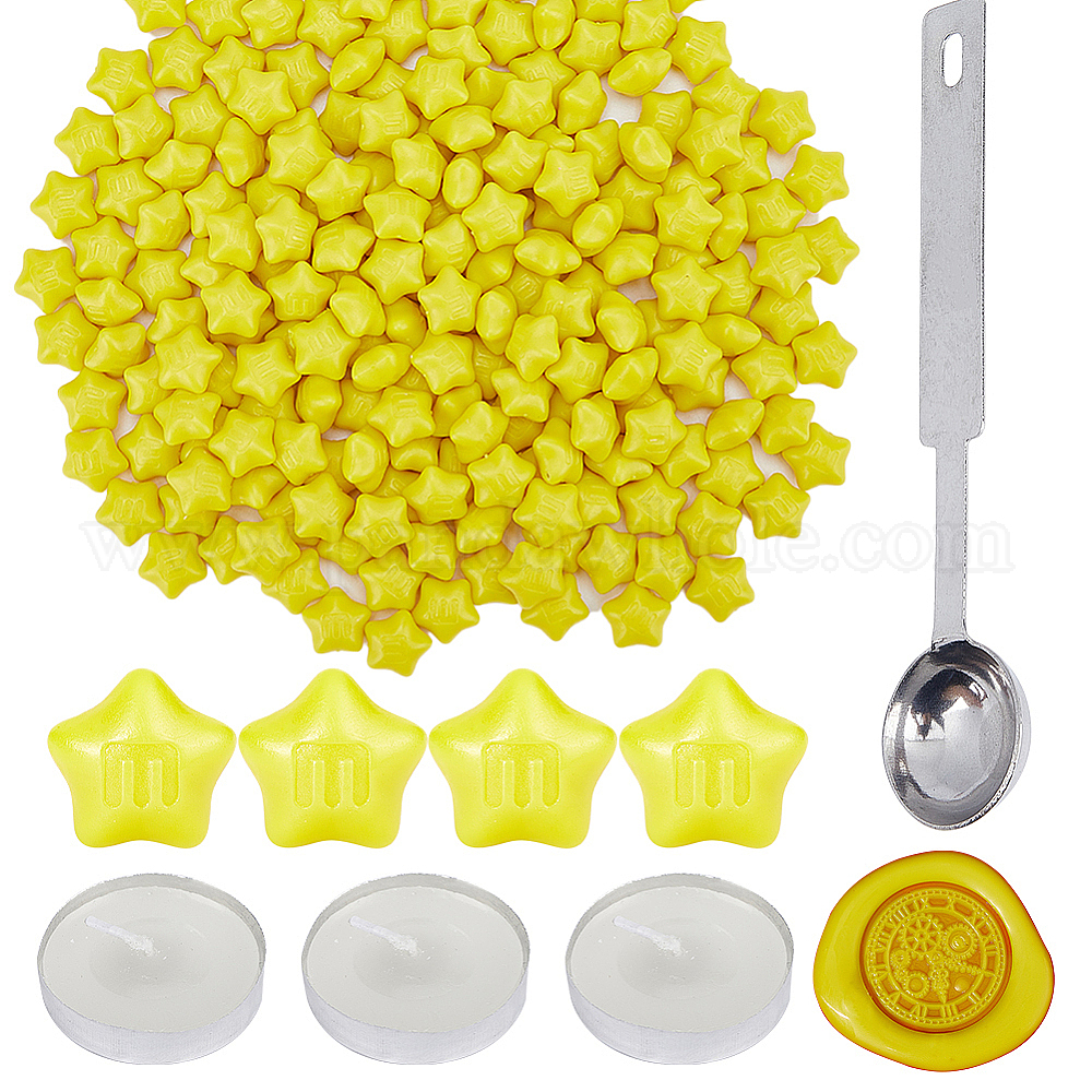 200шт. звездочка частицы сургуча, с ложкой из нержавеющей стали ПК, плоскими круглыми свечами ПК и пинцетом из железного бисера ПК., для ретро печать печать