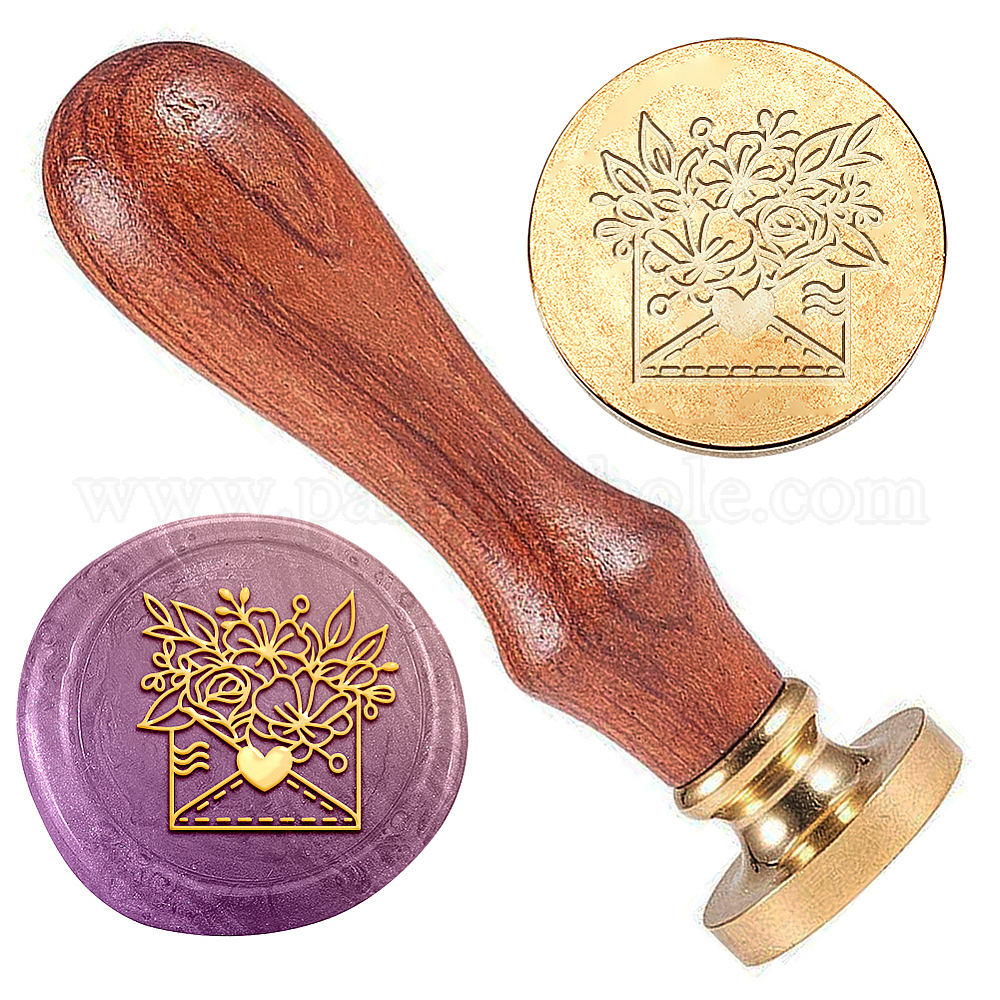 Набор сургучной печати, золотистый тон сургучной печати цельная латунная головка, с деревянной ручкой в стиле ретро, для конвертов приглашений, подарочная карта