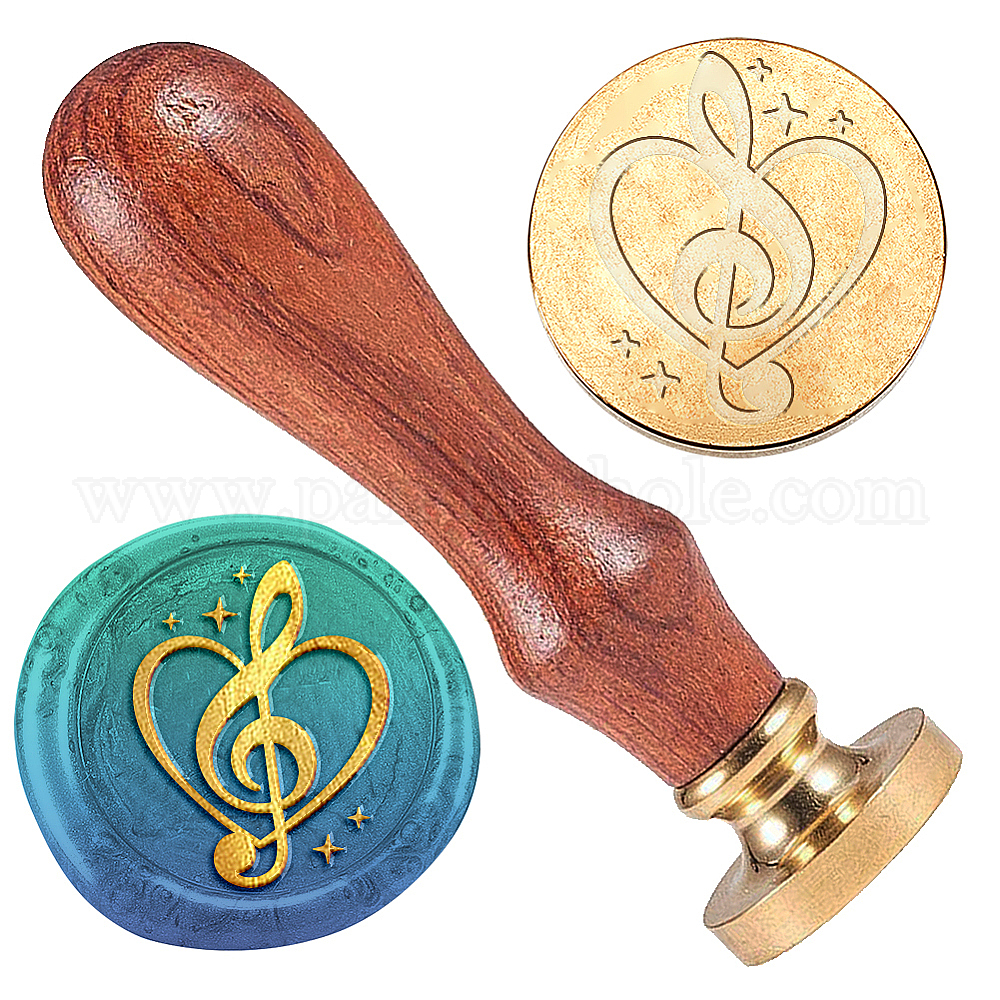 • Musical Note Набор сургучной печати, золотистый тон сургучной печати цельная латунная головка, с деревянной ручкой в стиле ретро, для конвертов приглашений, подарочная карта, музыкальная нота, 83x22 мм, штампы: 25x14.5 мм