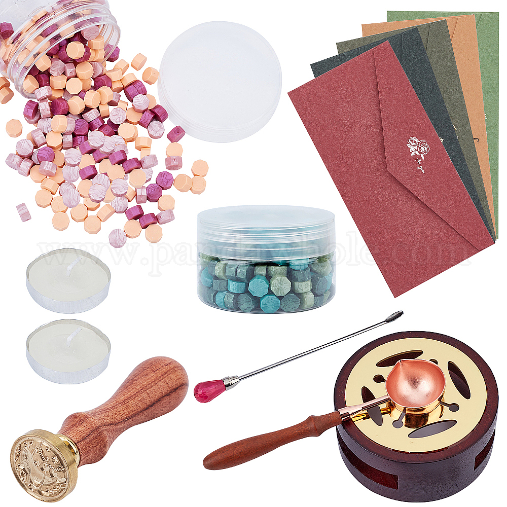 Наборы для изготовления альбомов своими руками, в том числе частицы сургуча, винтажная печать печать восковая палочка плавильный горшок держатель, латунная восковая печать штамп и восковые палочки плавильная ложка, бумажный конверт, свеча