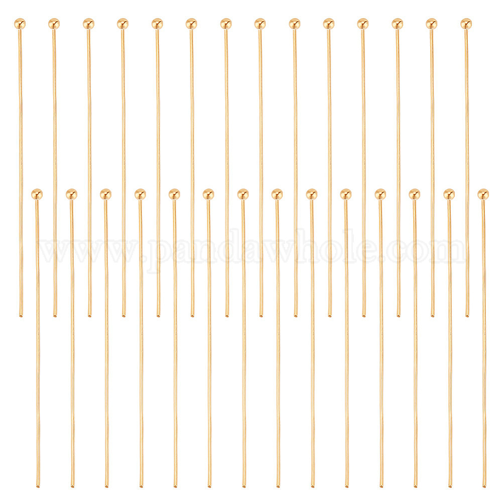 • Настоящее золото 18K 100 шт. Латунные штифты с шаровой головкой, реальный 18 k позолоченный, 22 датчик, 45x0.6 мм, Руководитель: 1.8 mm