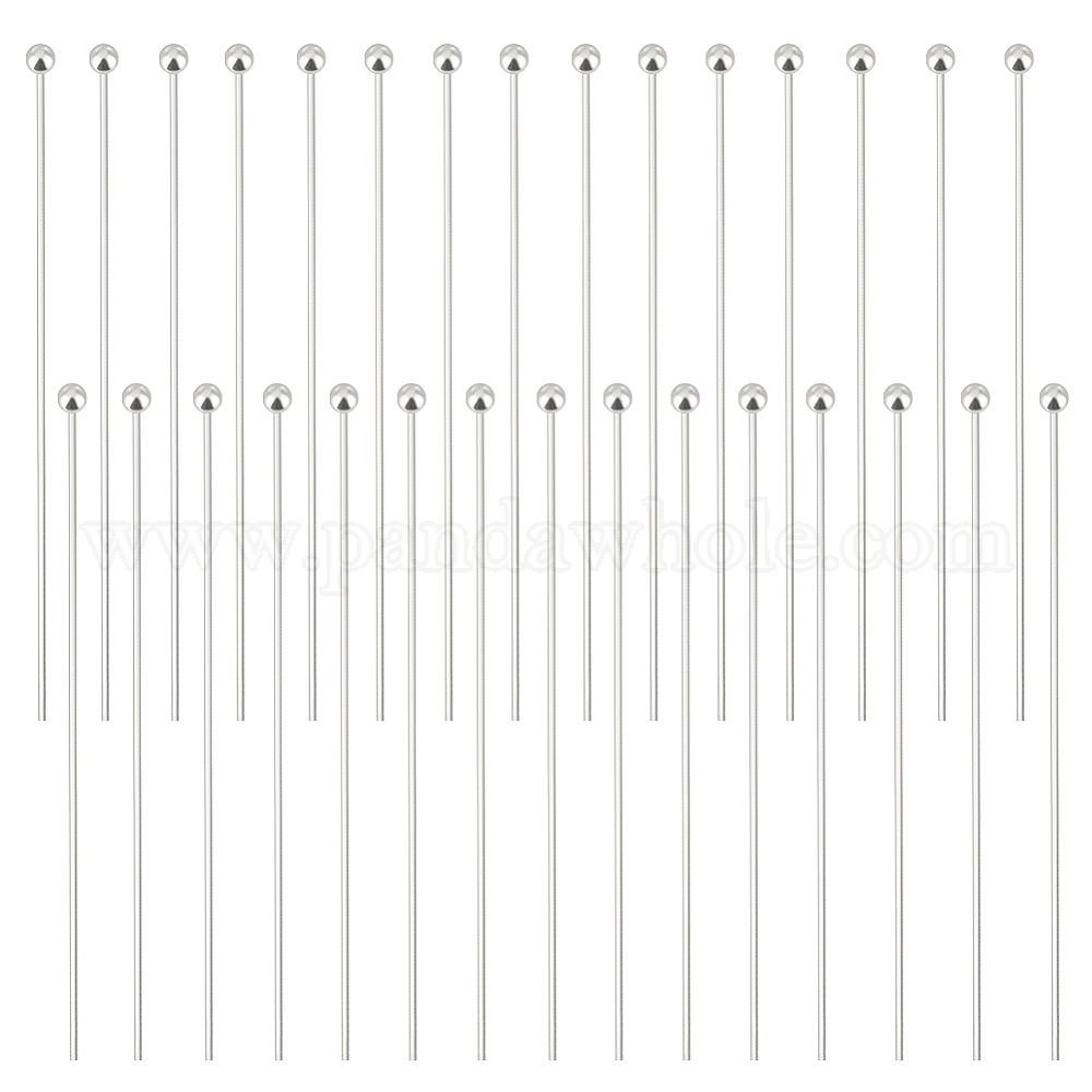 • Серебро 30 шт. 925 булавки с шарообразной головкой из стерлингового серебра, серебряные, 40x0.5 мм (калибр 24), Шар: 1.8 mm