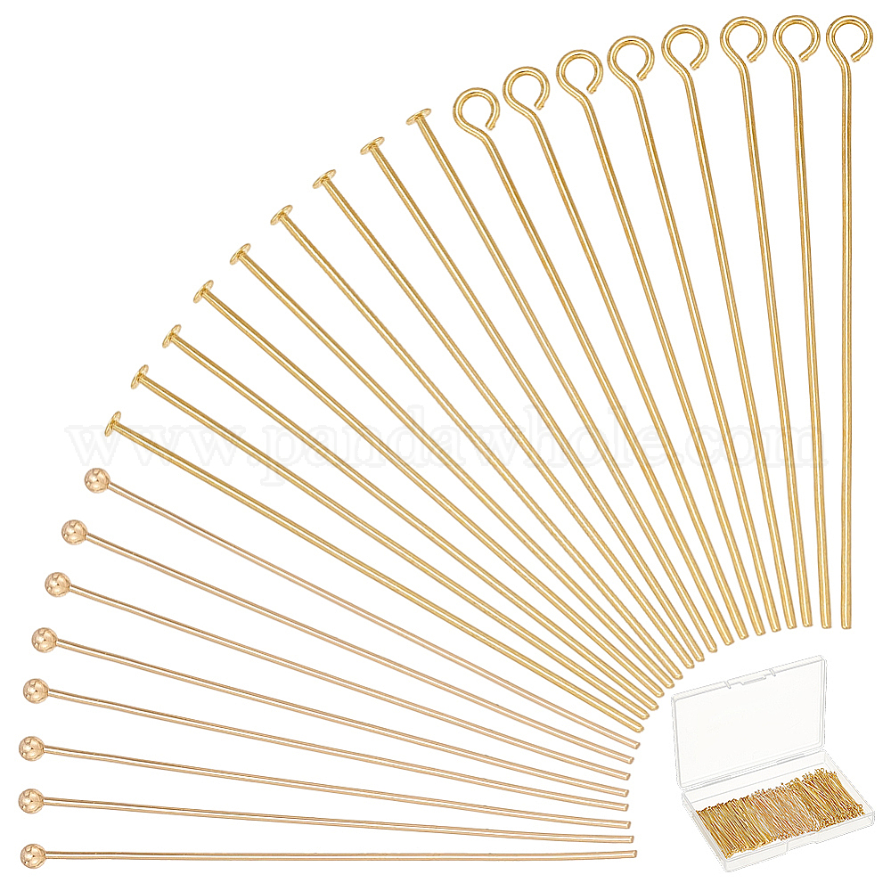 • Настоящее золото 18K 300шт. 3 стили латунные штифты с плоской головкой, долговечный, без никеля , реальный 18 k позолоченный, 45 мм, 100 шт / стиль