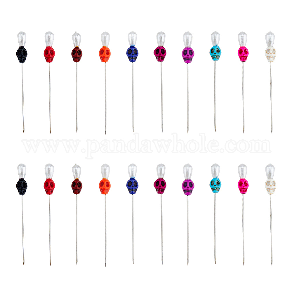 Портновская булавка из синтетической бирюзы, окрашенная в череп, Булавки с головками из железа и акрила с имитацией жемчуга