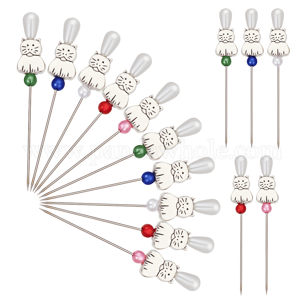 50 шт. 5 цвета булавки с железной головкой, портновская булавка для швейных поделок своими руками, с акриловой имитацией жемчуга и кошкой из сплава в тибетском стиле