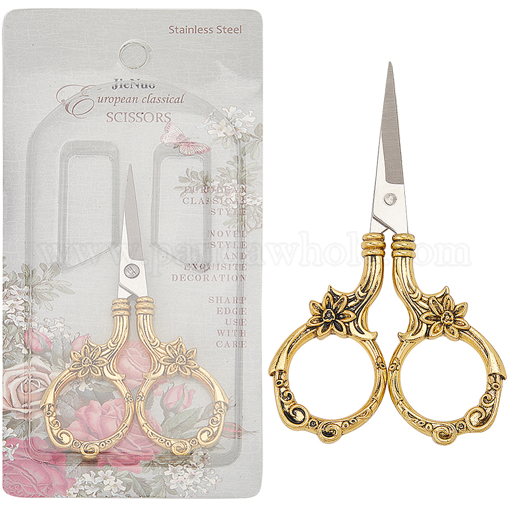 • Античное Золото 1ПК ретро ножницы из нержавеющей стали, ножницы для вышивания, швейные ножницы, античное золото , 90x53 мм