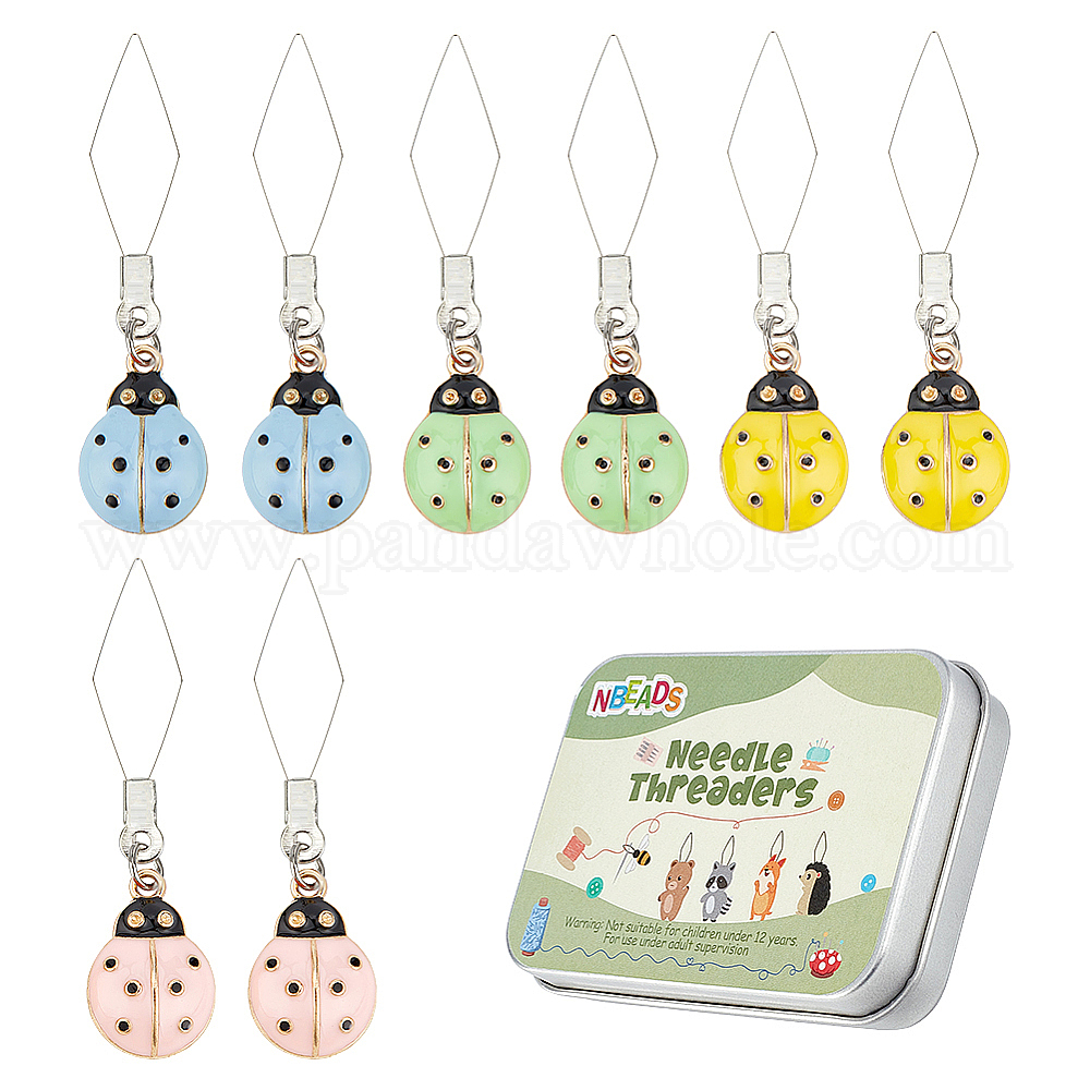 8 шт. 4 цвета божья коровка 304 нитевдеватель из нержавеющей стали, швейные нитки инструменты для шитья приспособления для квилтинга, с подвесками из эмали из цинкового сплава с легким позолотой