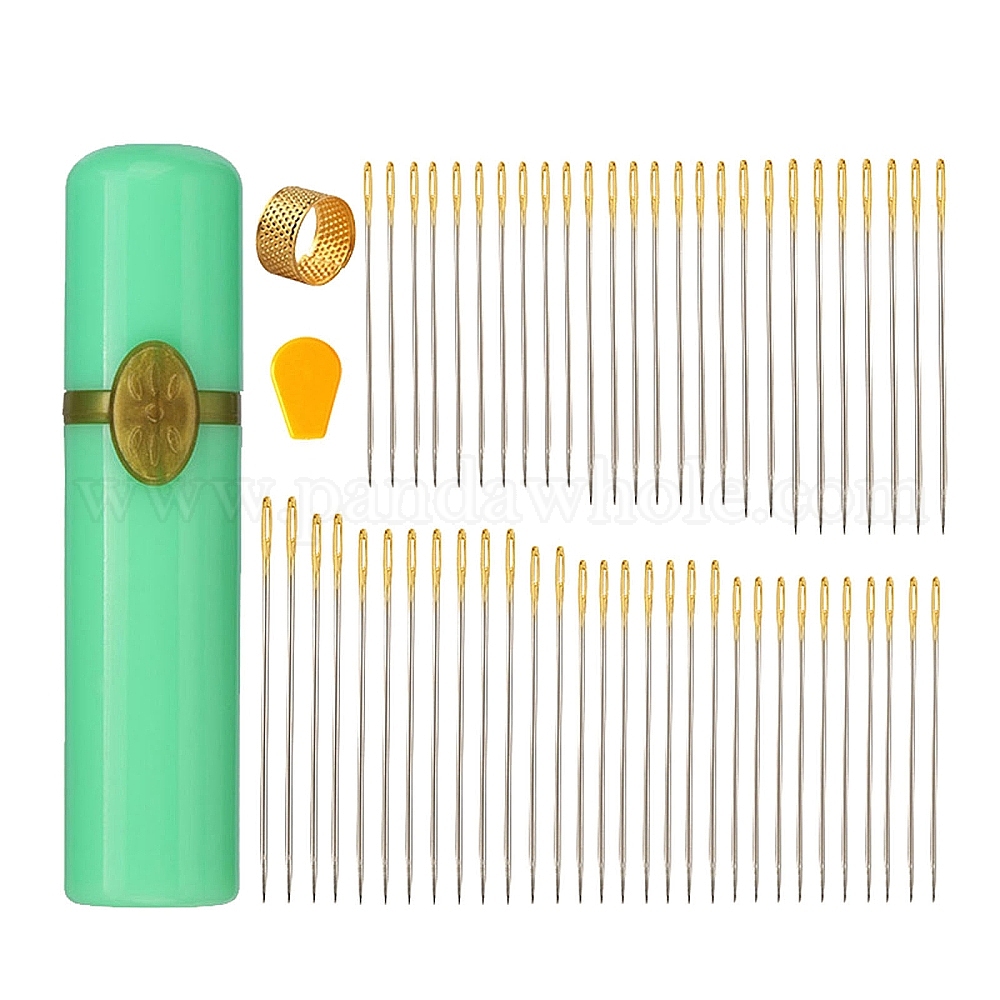 Швейные иглы из углеродистой стали, большие иглы для глаз, для шитья, вышивка поделки, включая коробку для игл, наперсток, нитевдеватель