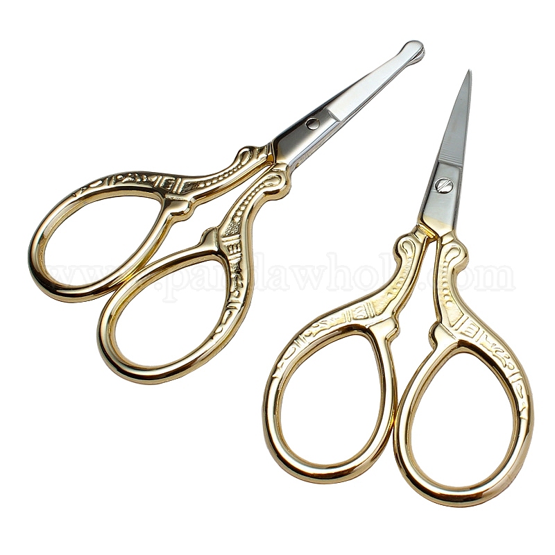 • Золотой & Цвет Нержавеющей Стали Ножницы из нержавеющей стали, с ручкой из цинкового сплава, ножницы для шитья орхидей, золотые и нержавеющая сталь цвет, 92x48 мм