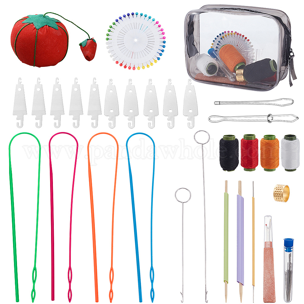 Поделок швейные наборы, в комплект входит пластиковый нитевдеватель, нитевдеватель из нержавеющей стали, стальные швейные петли, крючки для токарных станков, нитковдеватель, иголка и булавка, стальные распарыватели швов, хлопковые игольчатые подушечки, полиэфирные нити