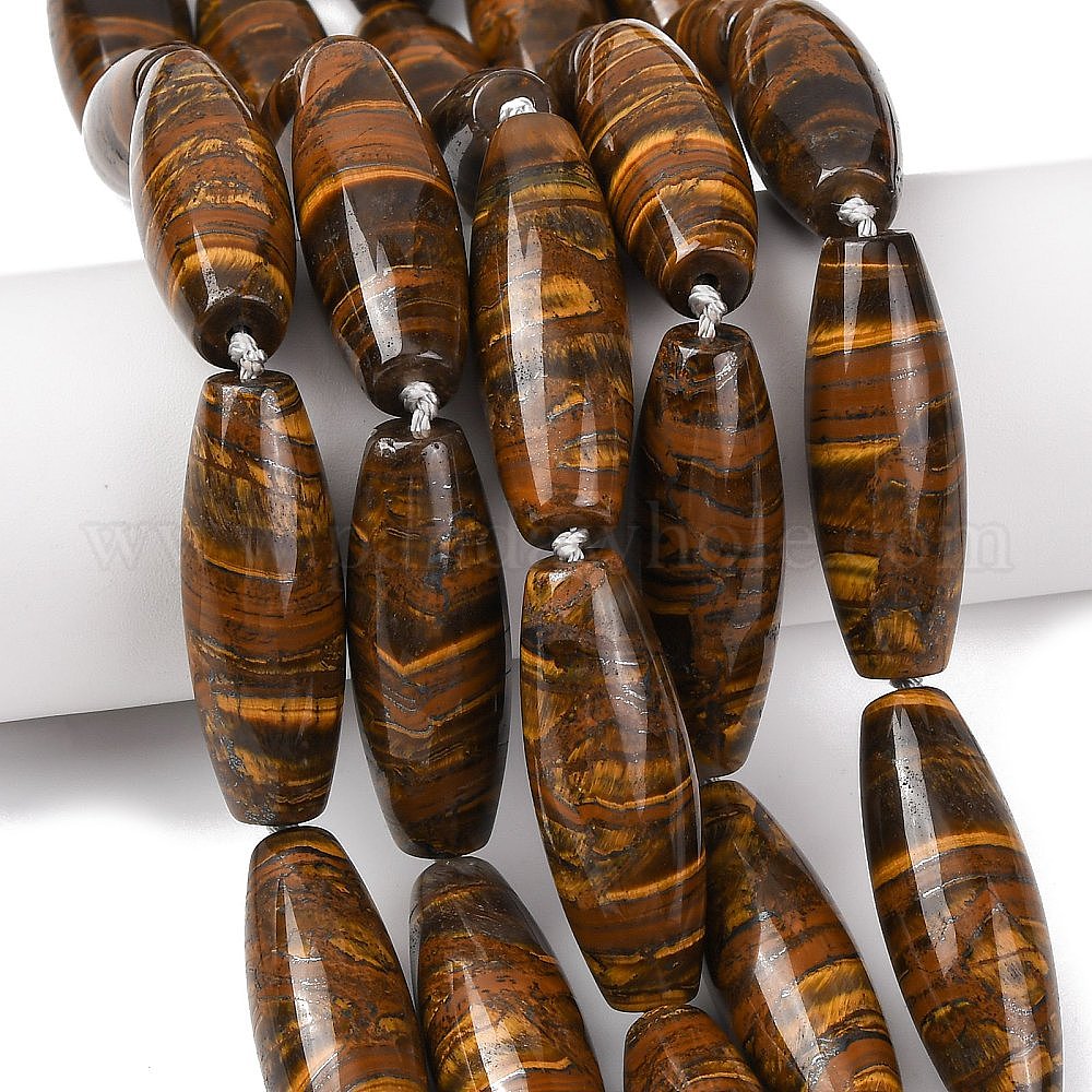 • Тигровое Железо Нити железных бусин Natura Tiger, рис, 40.5~41.5x14~14.5 мм, отверстие : 1.2 мм, около 9 шт / нитка, 15.20''~15.55'' (38.6~39.5 см)