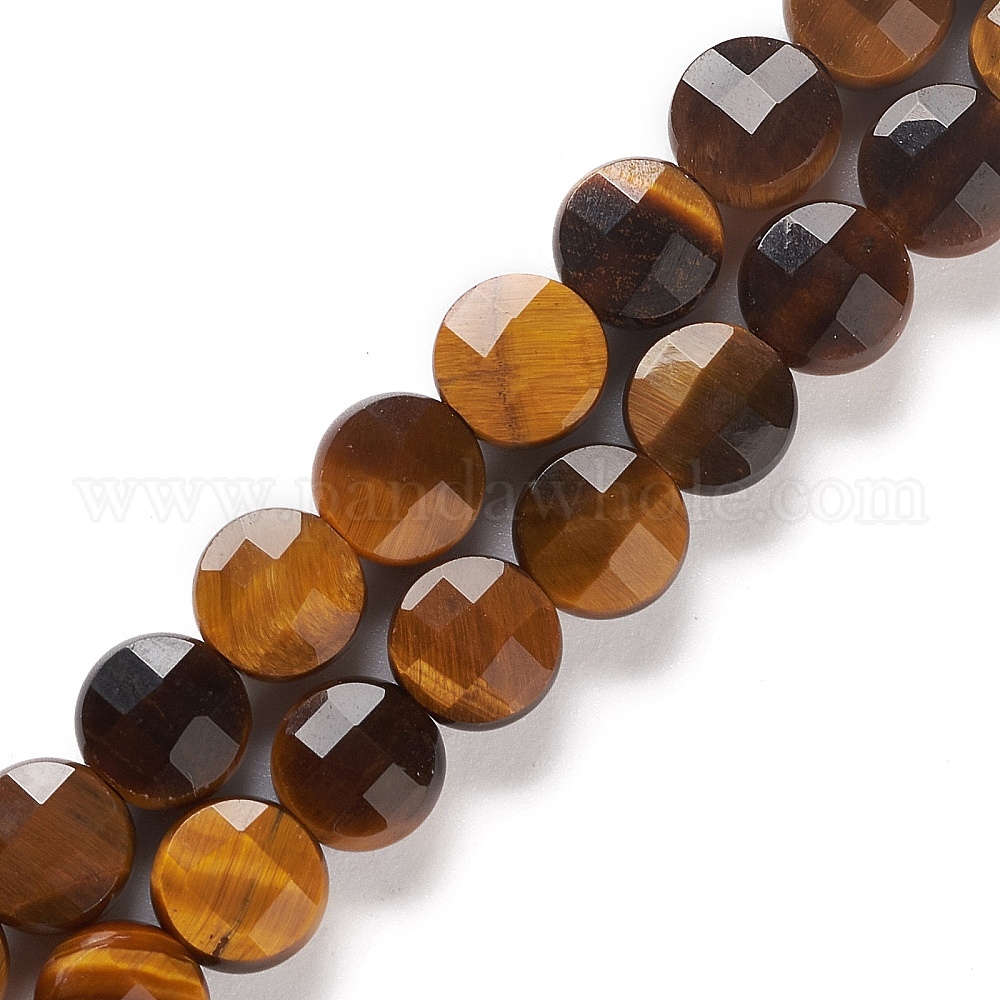 Природных тигровый глаз бисер нитей, граненые, плоско-круглые