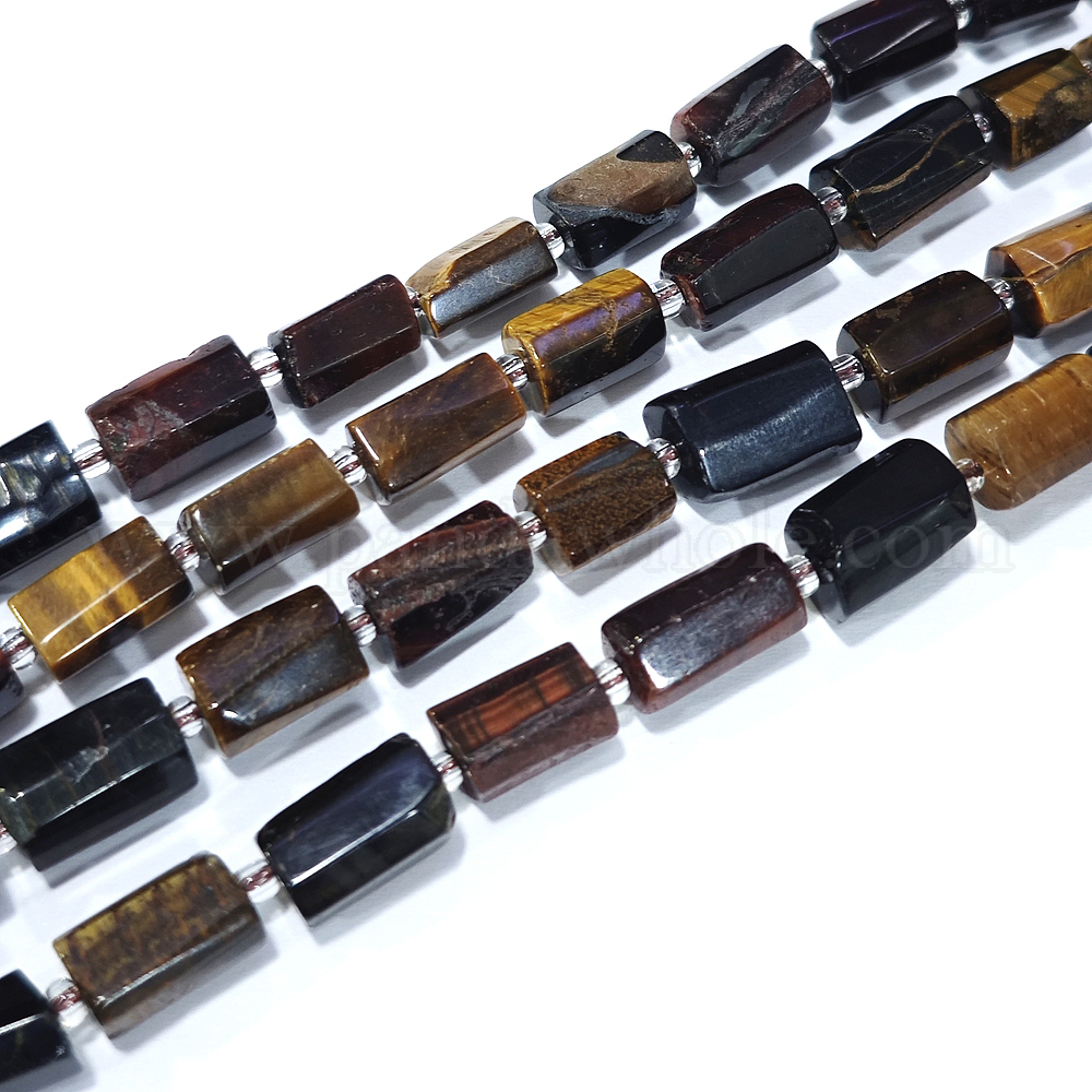 Нити бусин из натурального тигрового глаза, окрашенные и нагретые, с бисером, граненые, колонка