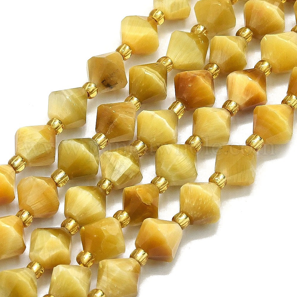 • Тигровый глаз Природных тигровый глаз бисер нитей, граненые, ромб, 8~8.5x8~8.5 мм, отверстие : 1 мм, около 37 шт / нитка, 15.35'' (39 см)
