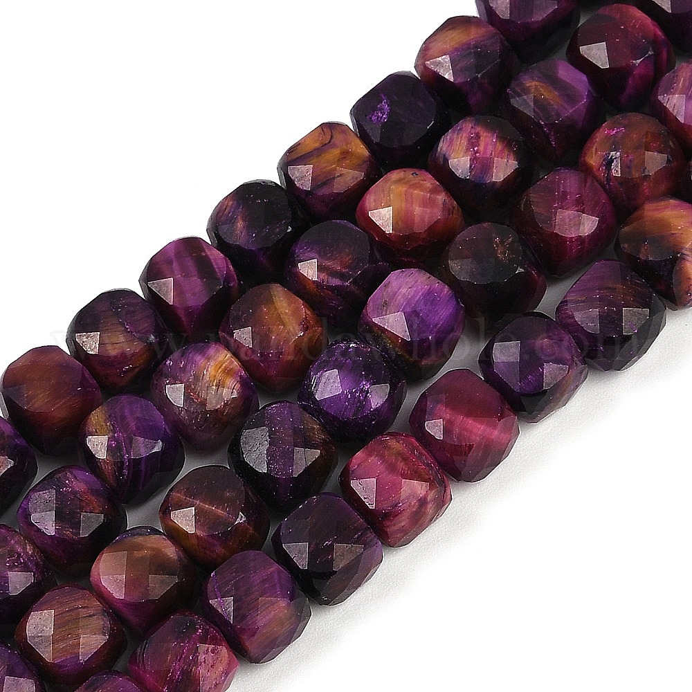 Натуральные нити из окрашенных тигровым глазом бусин, граненые, кубические
