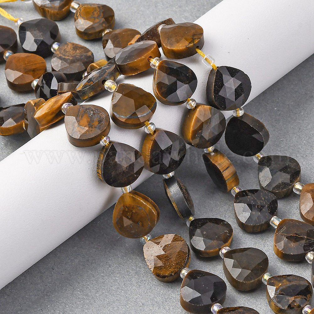 Природных тигровый глаз бисер нитей, граненое сердце, с бисером